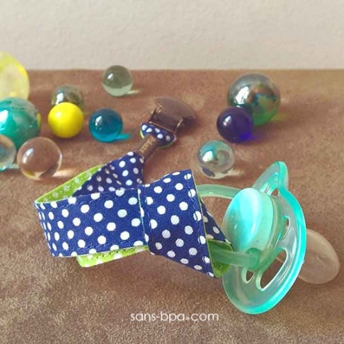 Sans scratch, le ruban se place facilement dans l'anse de la sucette (voir vidéo).