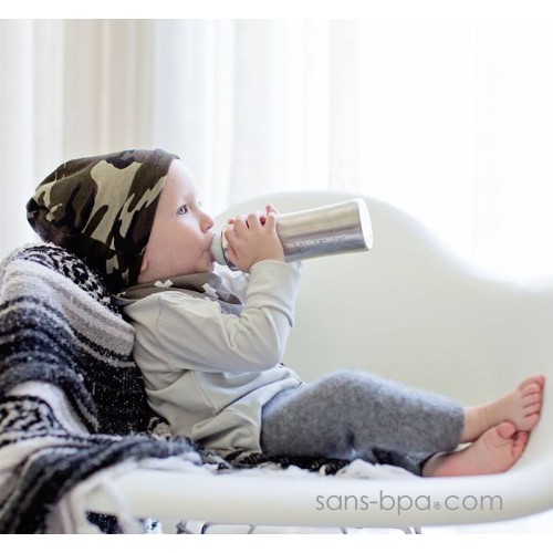 Sa paroi simple inox permet de réchauffer le lait en quelques minutes sous l'eau chaude : c'est un véritable biberon nomade !