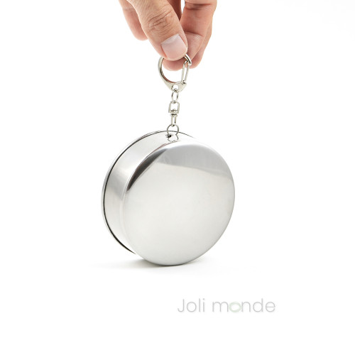 Timbale pliante inox - La Baroudeuse - 250ml - JOLI MONDEBoire sur le pouce et sans plastique..., Hygiénique & pratique...Inox 18/8Contenance 250ml . Diamètre 7 / 7.5 cm . Hauteur ouvert 8 cm . fermé 2.5 cm . Poids 130g.