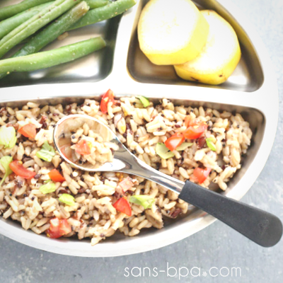 Nous avons pris le choix de ne proposer que des timbales en inox. Les matériaux d'alternative au plastique tels que le bambou, ne nous semblent pas suffisamment résistants pour pouvoir être pertinents pour cet âge où l'enfant adore explorer sa vaisselle en la jetant à terre par exemple (mon expérience de maman de 4 enfants me l'a bien prouvée !).