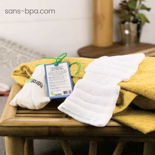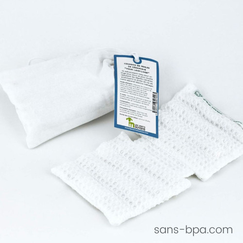 Quelle bonne idée que de proposer désormais les perles céramiques contenues dans un coussinet qui contient 40 perles :le coussinet se place directement au coeur du linge et permet de réduire d'1/3 la dose de lessive !
