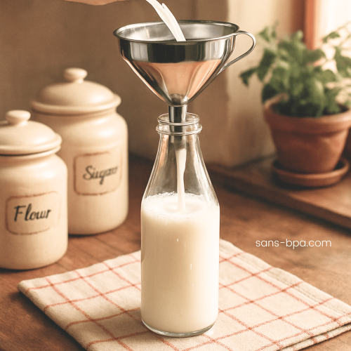 Avec sa poignée transvasez liquides, huiles, mais aussi sucre fin facilement.