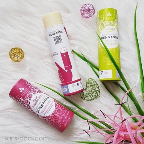 Déodorant solide contenu dans un tube cartonné coloré, recyclé & recyclable, résistant et protecteur.