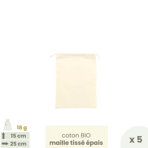 Sac à vrac SMALL - Farines & céréales . 15 x 25cm . Poids 18g - JOLI MONDEContenir et ne plus rien jeter...100% coton biologique.Certifié Ecocert, Global Recycled Standard.Tissus tissé.Fermeture cordon coulissant.15 x 25cm . Poids 18g.Vendu à l'unité.
