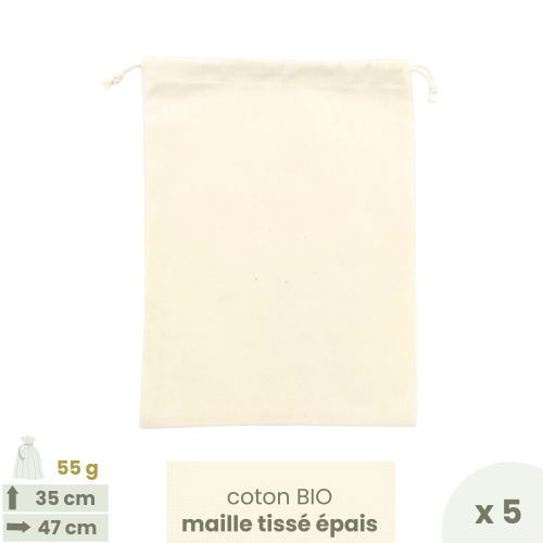 Sac à vrac LARGE - Farines & céréales . 35 x 47cm . Poids 55g - JOLI MONDEContenir et ne plus rien jeter...Certifié Ecocert, Global Recycled Standard.Tissus tissé.Fermeture cordon coulissant.35 x 47cm . Poids 55g.Vendu à l'unité.