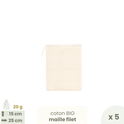 Oublions le plastique avec ces sacs à vrac en maille de coton qui laissent respirer les fruits & les légumes durant leur transport et leur conservation
