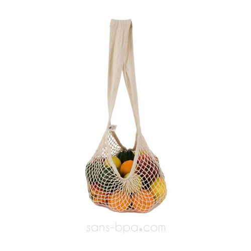 Sa maille filet douce et résistante, 100 % coton naturel, s'étire et s'adapte au contenu.