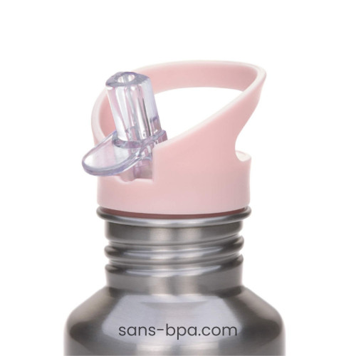 Vendue avec 2 bouchons plastique (PP#5) : 1 bouchon sport à bec rabattable + 1 bouchon plat à anse inox.