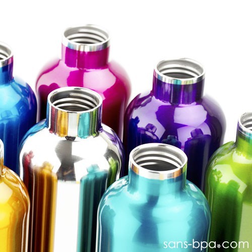 Inox 18/8 double paroi (isotherme). Goulot étroit.