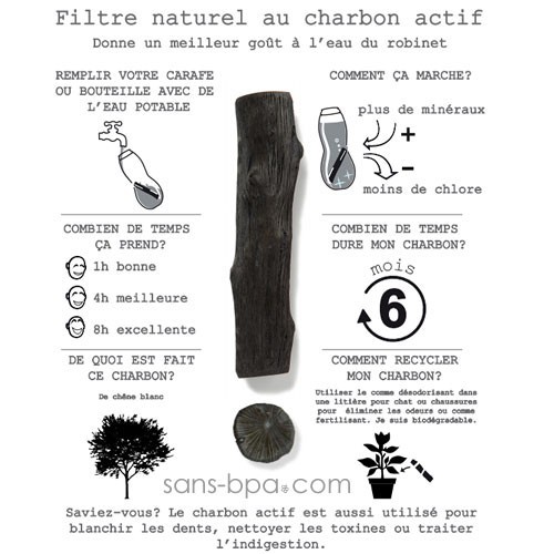 1 charbon est idéal pour filtrer 1 litre d'eau.