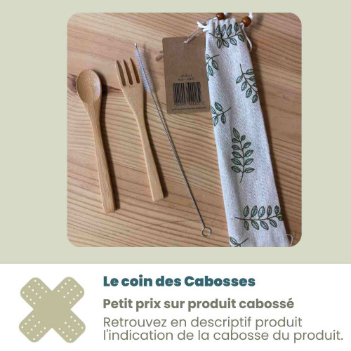 Cuillère, fourchette, paille & son goupillon d'entretien.