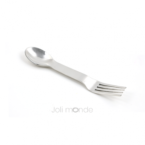 En inox 18/8 de haute qualité, cette fourchette-cuillère est résistante, ne rouille pas et peut être utilisée avec tous types d'aliments, même les plus acides (tomates, citron...).