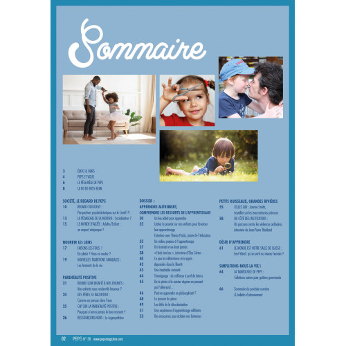 Peps, c'est 80 pages trimestrielles, une bonne dose de peps qui nous aide au quotidien à accompagner petits et grands avec bienveillance en nous donnant des pistes multiples.