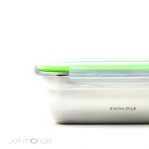 Boite inox La Vrac Large 1400ml - JOLI MONDEBoite idéale au mode de vie Zéro Déchet..., Modèle Vrac Large, Matière saineContenant inox 18/8 étanche.Couvercle plastique #5 PP sans BPA.Joint silicone amovible.Dimensions 20.5 x 15.5 cm . Hauteur 7cm . Contenance 1400ml . Poids 320gVendue à l'unité.