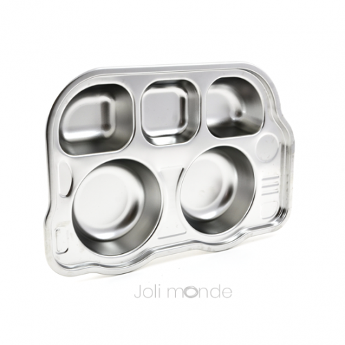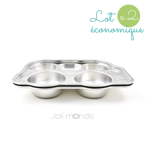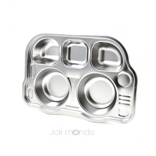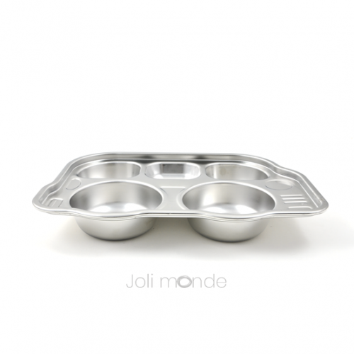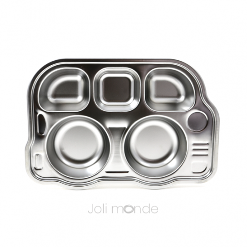 P'tit Bus - Plateau repas 5 compartiments Kids - JOLI MONDE"Ding Ding"... le repas est servi !, Matière saine, zéro plastique !, Produit durableInox 18/8.26 x 18 cm . Hauteur 4 cm . Poids 245g.Diam parties rondes 9cm . Dimensions parties trapèzes 6 x 7cm . Dimensions carré central 6 x 7cm.Convient à tous les âges, habituellement jusqu'à 6 ans.Vendu à...
