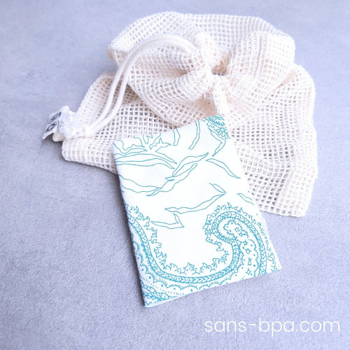 Le hankybook est vendu dans son filet de lavage en coton bio.