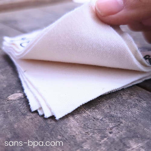 En coton biologique (le coton BIO n'utilise aucun pesticide ni engrais chimique), il est réutilisable à souhait.