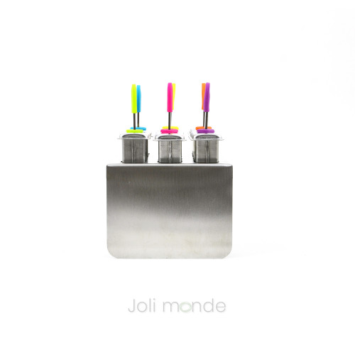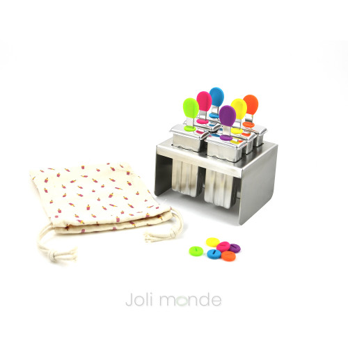 Lot 6 bâtonnets à glace inox réutilisable pour Tubulus - Joli MondePour des glaces maison zéro plastique !Bâtonnet inox 18/8 réutilisable pour moule à glace inox modèle Tubulus Joli MondePartie métallique : 11.5 cm x 1 cm.Bout silicone coloré escamotable.Vendus en lot de 6 coloris assortis.