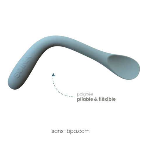 Les 2 cuillères ont un manche flexible et pliable permettant d'ajuster une bonne prise en main par les parents ou le petits selon.