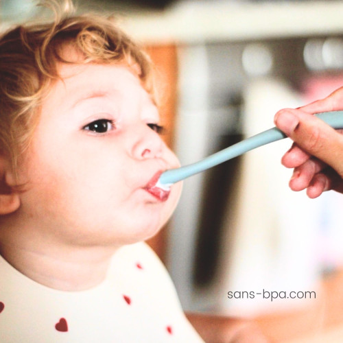 Cuillère petite plate parfaite pour accompagner les premiers repas du bébé.