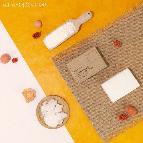Dans ce savon vaisselle solide, le bicarbonate aura une action nettoyante et dégraissante.