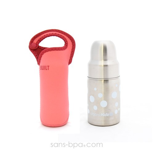 Inox 18/8 simple paroi. Goulot large.Tétine silicone vitesse rapide (6 mois+). Bague PP#5.Capuchon / verre gradué inox.Hauteur : 16.5 cm . Diamètre biberon : 6 cm . Diamètre goulot : 4.5 cm . Poids : 130g
