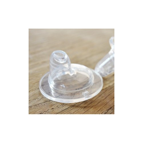Tétines silicone péristaltiques à débit d'air contrôlé.Goulot large. Débit médium.Pour nourrisson de 3 à 6 mois.Diamètre 5cm . Hauteur 4 cm.Vendues par lot de 2.