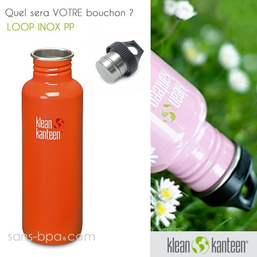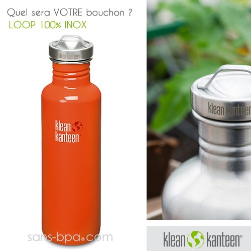 Bouchon Loop.Inox 18/8 & joint silicone.Convient aux gourdes Klean Kanteen Classic et Classic Isotherme.