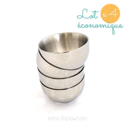 Inox 18/8 double paroi isolée.Diamètre 12cm . Hauteur 7cm. Contenance 400ml . Poids 215g.
