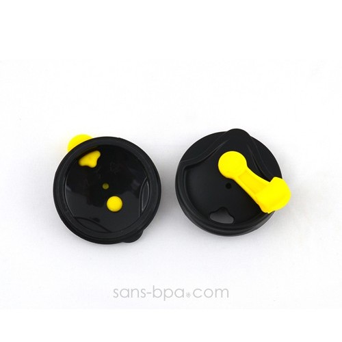 Couvercle plastique PP#5 & joint silicone (étanche mais non anti-fuite).