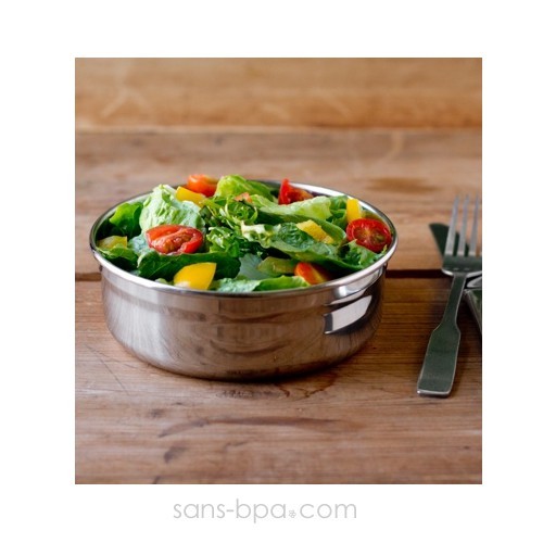 Contenant hermétique inox 18/8 et couvercle plastique #5 PP.