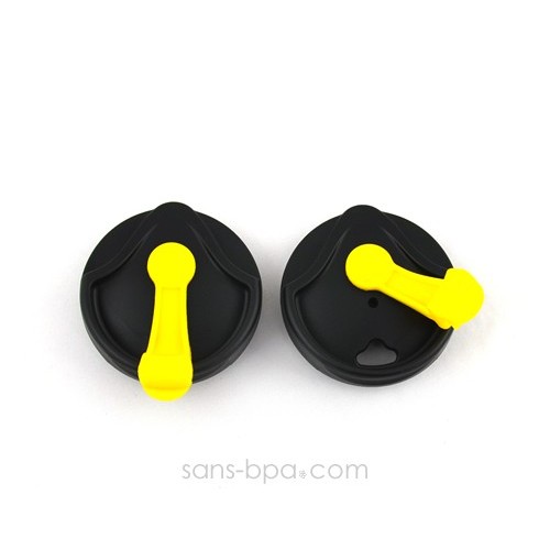 Couvercle plastique PP#5 & joint silicone (étanche mais non anti-fuite).