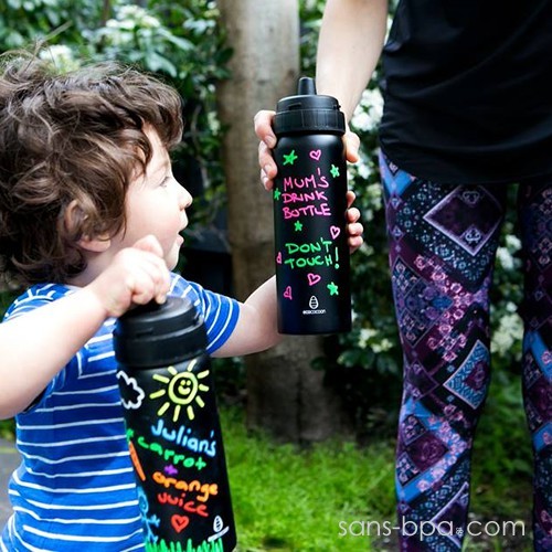 Inox 18/8 double paroi (isotherme). Goulot étroit.