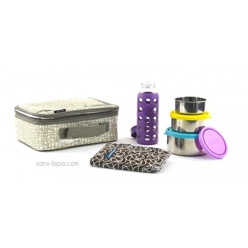 Tissu imperméabilisé et matelassé. Isotherme.Extérieur coton BIO enduit.Intérieur polyester, doublure feutre isolant.Poignée centrale. Fermeture zippée.Hauteur 19cm . Largeur 26cm . Profondeur 9cm. Poids 300g.
