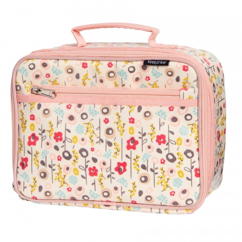 Tissu imperméabilisé et matelassé. Isotherme.Extérieur coton BIO enduit.Intérieur polyester, doublure feutre isolant.Poignée centrale. Fermeture zippée.Hauteur 19cm . Largeur 26cm . Profondeur 9cm. Poids 300g.