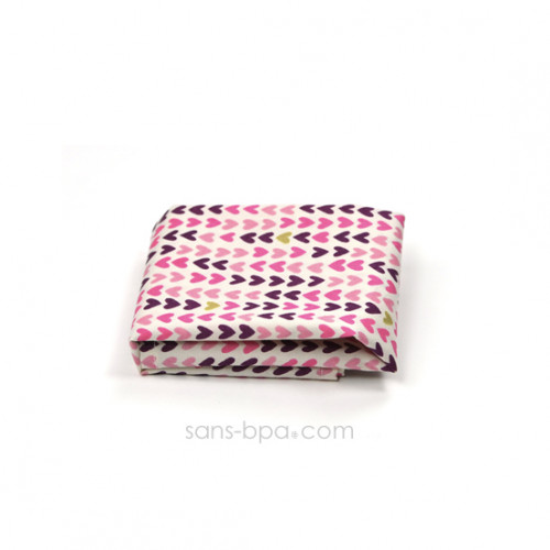 Pochette Mini - PETITS COEURSEmballer et ne plus rien jeter !Pochette tissu souple réutilisable.Extérieur : coton . Intérieur nylon imperméable.Fermeture à scratch.18 x 10.5 cm.