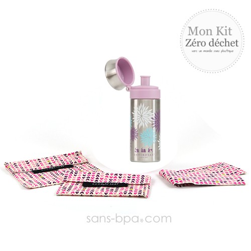 Inox 18/8 simple paroi. Goulot extra large.Bouchon sport intérieur PP#5 - extérieur inox 18/8Hauteur : 17 cm . Culot : 6 cm . Goulot : 5.2 cm . Poids : 136g