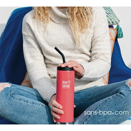 Paille en acier inoxydable et en silicone.Bouchon intérieur/extérieur plastique PP#5 & joint silicone.Convient uniquement aux gourdes Klean Kanteen TKWide.