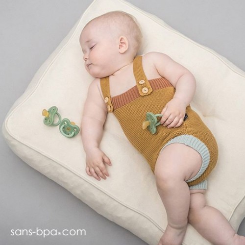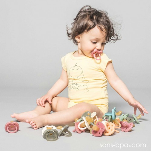 Cette tétine en caoutchouc colorée naturellement avec des pigments minéraux, est aussi saine pour les bébés que pour la planète !