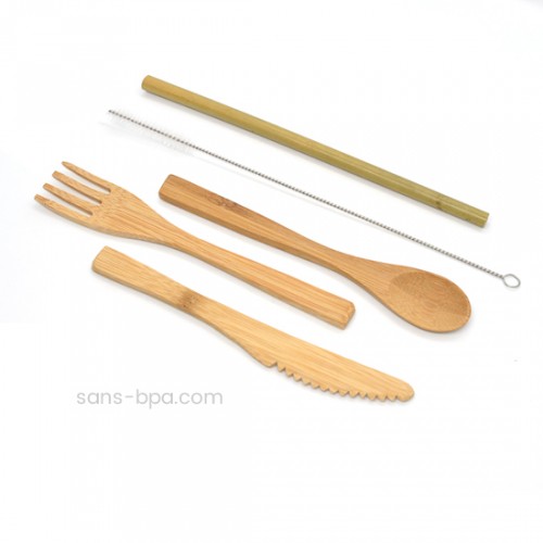 Sur le pouce - Les Fleurs - JOLI MONDEEnsemble 5 pièces.Couteau, cuillère, fourchette, paille & son goupillon d'entretien.En bambou de développement durable, sans colorant ni agent de blanchiment.Couverts : longueur 16cm . Largeur manche 1cm. Largeur cuillère/fourchette 2.5cmPaille : longueur 19.5cm . Diam. 4-7mmPochon tissu lin : 25 x 6 cmPoids total...