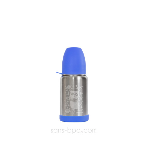 Bec anti-fuite silicone souple. Bague inox. Capuchon silicone.