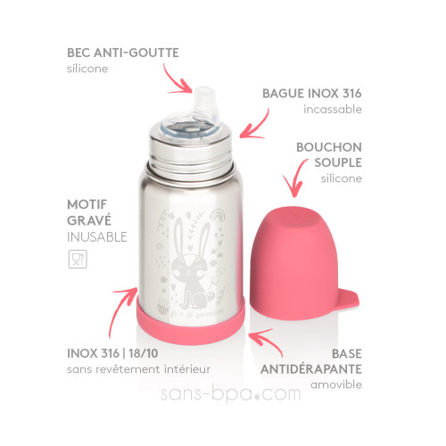 Gourde anti-fuite inox 350ml SIPPY - Lapin - GASPAJOE