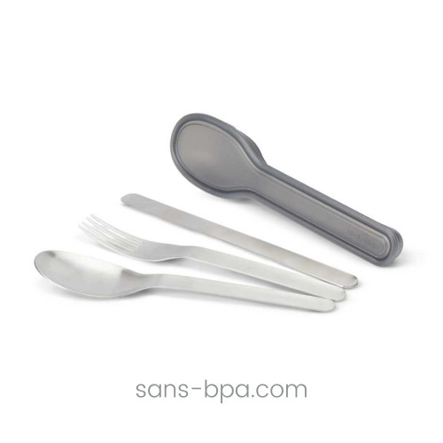 Ensemble couverts inox couteau + fourchette + cuillère.