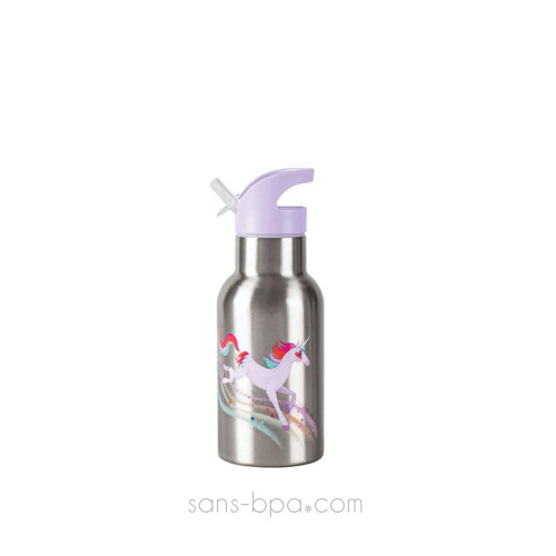 Gourde inox isotherme système paille & sport enfant 400ml Licorne - CROCODILE CREEK