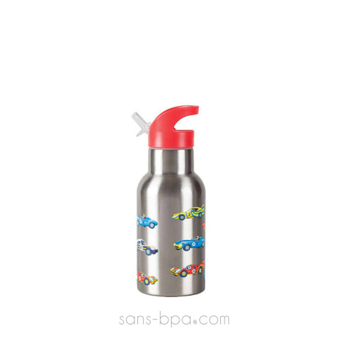 Gourde inox isotherme système paille & sport enfant 400ml Voitures - CROCODILE CREEK