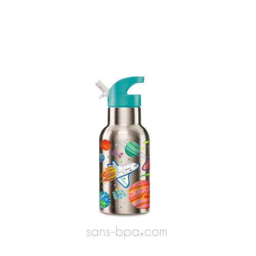 Gourde inox isotherme système paille & sport enfant 400ml Planètes - CROCODILE CREEK