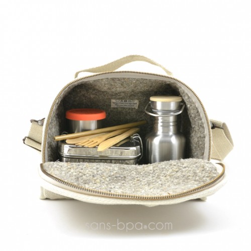 Avec son intérieur en laine lui conférant naturellement sa propriété isothermique, l'humidité de votre repas contenu dans ce sac sera absorbé par la laine : il s'agira simplement de laisser le sac aéré toute une nuit pour qu'il sèche sans soucis.