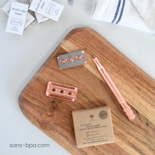 Pour les rasoirs de sécurité trois pièces: désolidarisez la tête du manche puis insérez la lame entre les deux parties qui forment la tête.