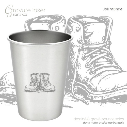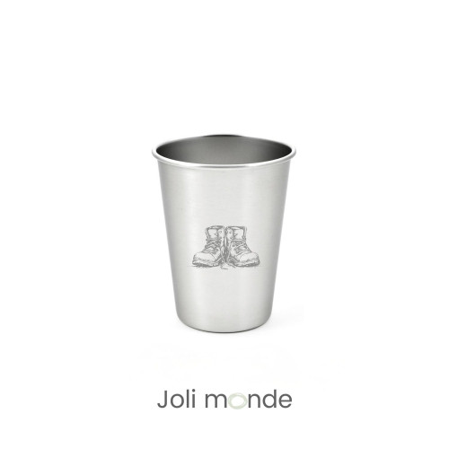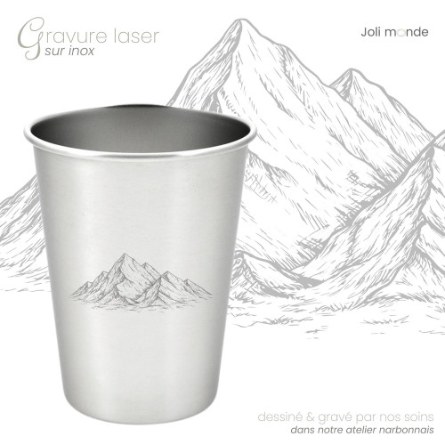 Timbale inox 300 ml - JOLI MONDEUn verre incassable & léger, parfait pour s'hydrater sans plastique !Matière légère, incassable et saine : en inox simple paroi.Motif gravure laser créé et gravé par nos soins dans nos locaux narbonnais.Hauteur 10.3 cm . Diamètres 8 cm / 5.5 cm . Contenance 300 ml. Poids 70 gPasse au lave-vaisselle.