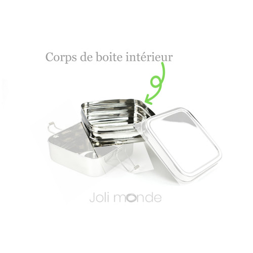 Tiffin inox carré 2 étages - JOLI MONDERepas à emporter zéro plastique !100% inox #204. Non étanche.Fermeture sécurisée par crochet.2 compartiments hauteur 4cmCôtés 13cm . Hauteur totale 7.5cm . Contenance 1000 / 1300ml . Poids 390g.Par compartiment : hauteur 4 cm . Contenance 500 à 650ml.